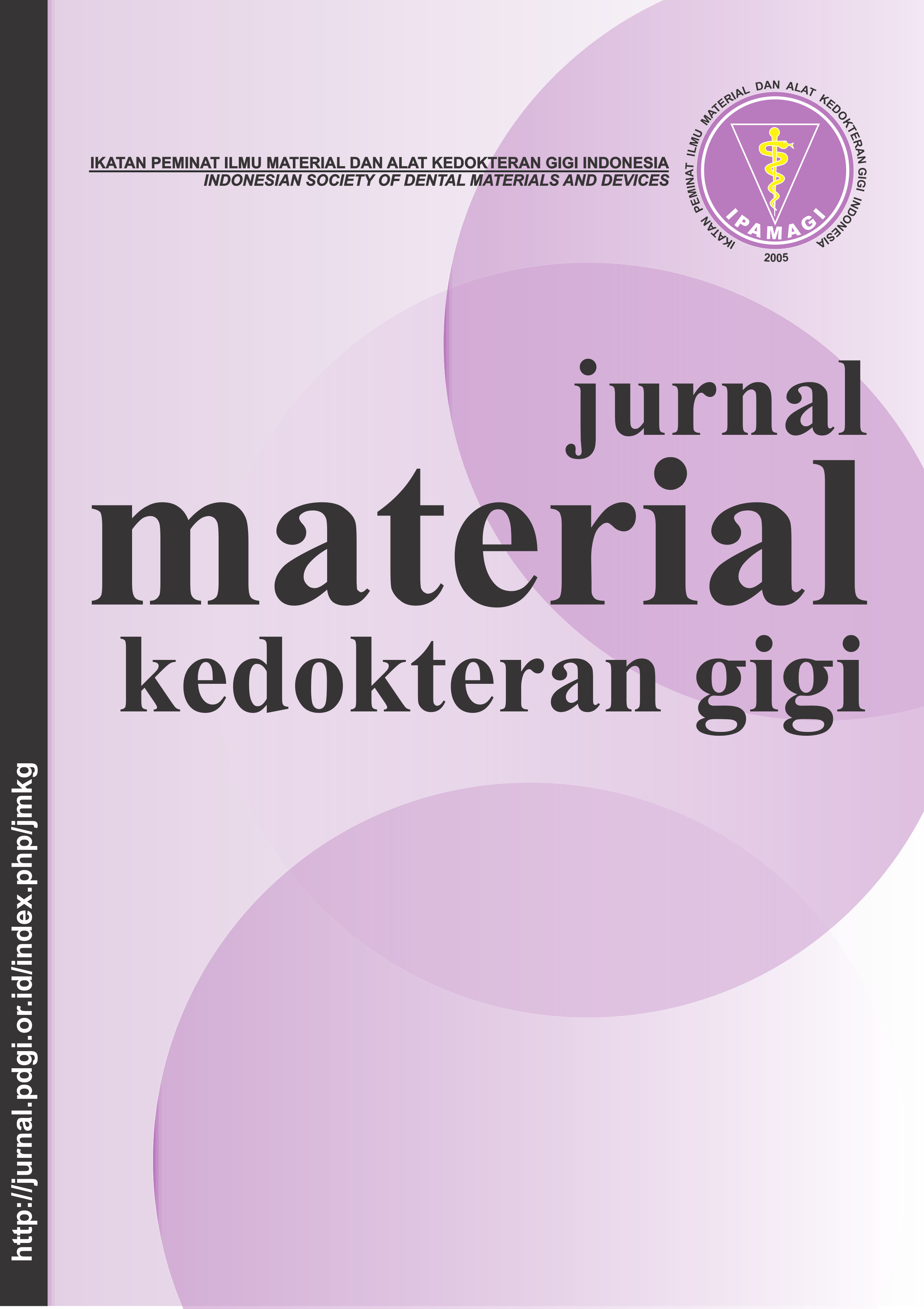 Jurnal Material Kedokteran Gigi (JMKG) Diterbitkan setiap Bulan Maret dan September oleh Ikatan Peminat Ilmu Material dan Alat Kedokteran Gigi Indonesia (IPAMAGI) sebagai media publikasi...