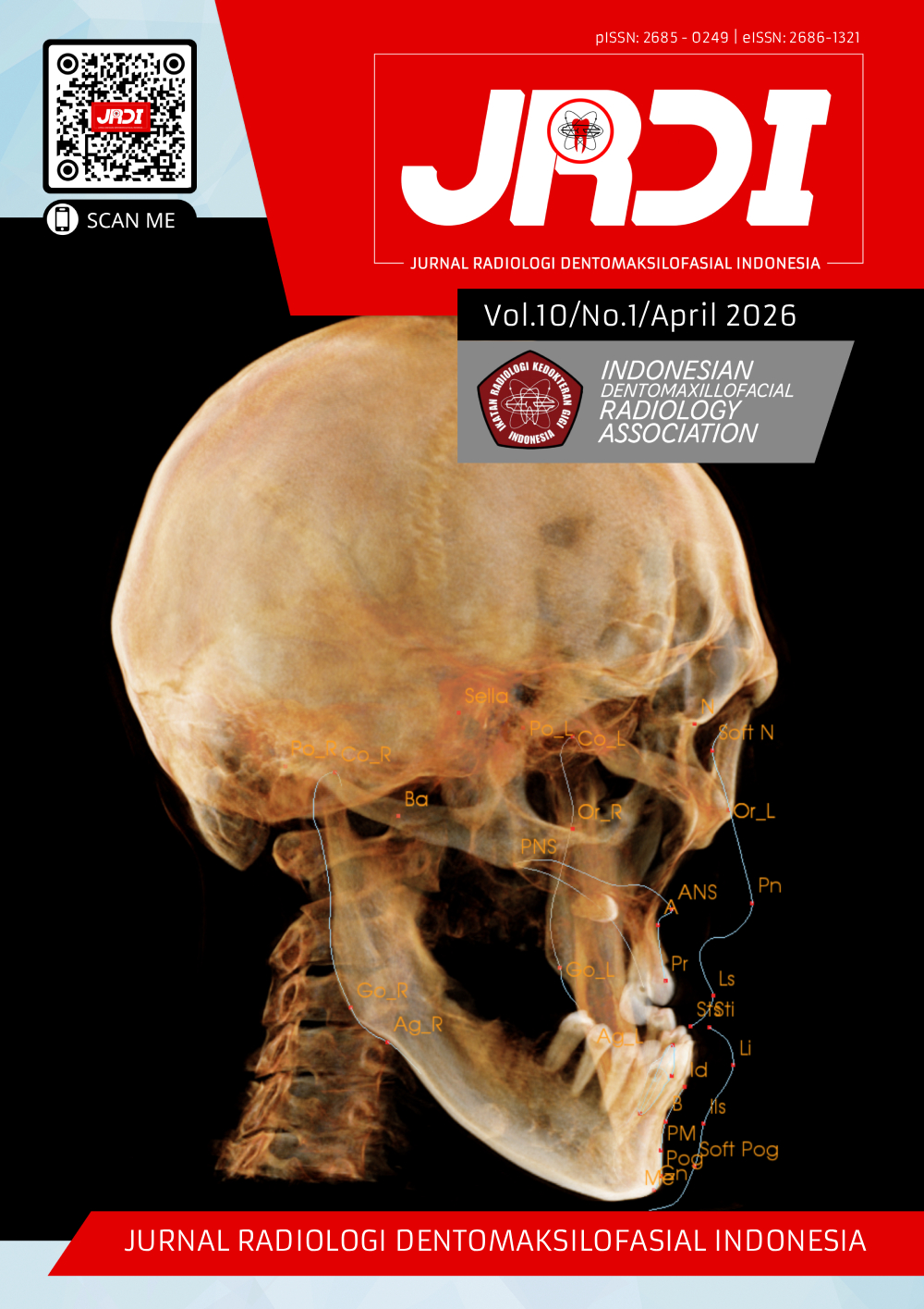 Jurnal Radiologi Dentomaksilofasial Indonesia (JRDI) is a scientific publication which contains manuscripts particularly in the area of Dentomaxillofacial Radiology, published...